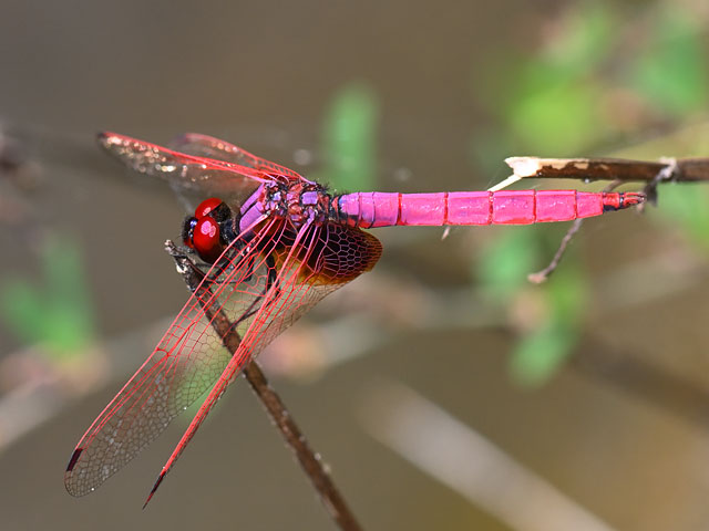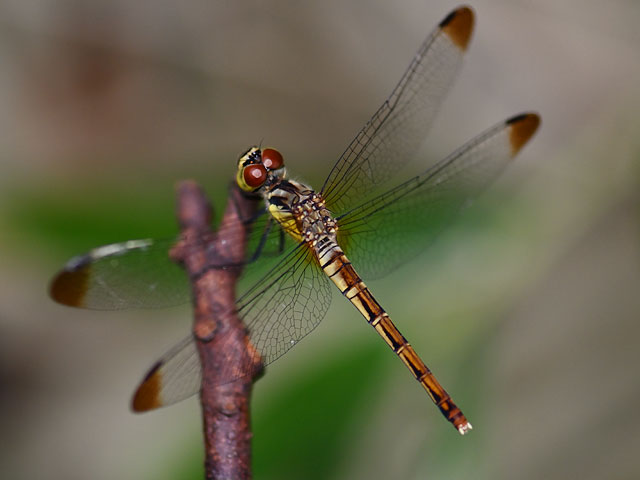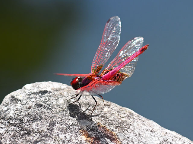 ▲池近くの木陰に止まっているマユタテアカネのオス.▲