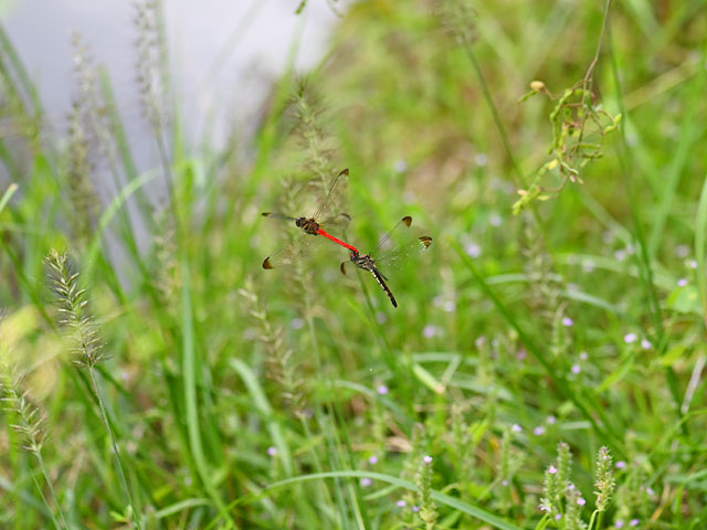 これ以外には目立ったトンボがいませんでしたが,ベニトンボが2頭,池の畔に止まっていました.ベニトンボは最近掲示板などへも報告が上がっています.今日は同じ池で複数見たので,いよいよ数が増えてきな,と感じました.