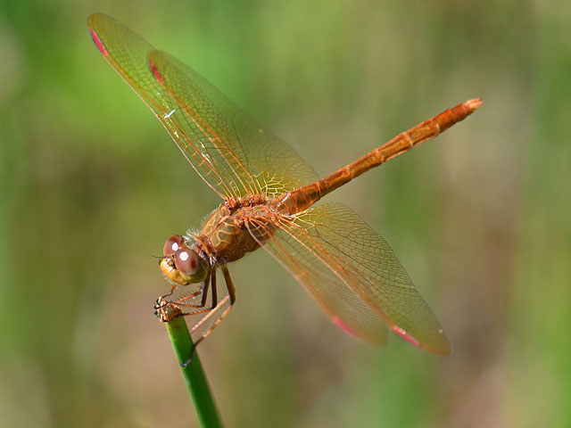 ようやく10月になり,気温も30℃を下回るようになりました.そろそろアカトンボも本格的に活動しているはずです.しばらくの間,暑さに負けて野外へ出ていませんでした.この秋に県下に棲息する一通りのアカトンボに出会いたくなって,今日久しぶりに本格的に調査を行いました.ねらいは,ナニワトンボとマイコアカネです.