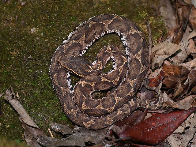▲マムシ君.とぐろを巻いているのに出会うことは少ない.▲