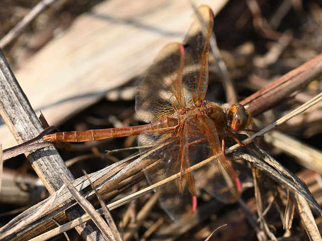 結構たくさんいたので,というかオオキトンボしないないような状況で,アキアカネが2,3頭いたようですが,次の池に行ってみることにしました.ここは昔記録がありますが,メガソーラーが入っていて,トンボが集まるような状況ではないような感じです.結局オオキトンボは見られませんでした.ただ収穫だったのは,ここでは初記録のマイコアカネがいたことです.これは来年きちんと調べ直す必要がありそうです.