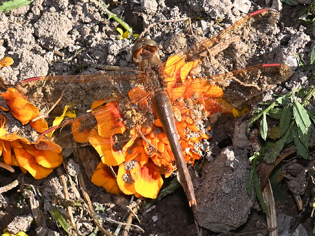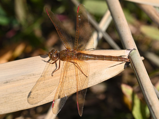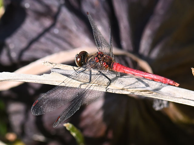 ▲マイコアカネのオス.この写真でははっきりとしないが,額の水色を確認した.▲