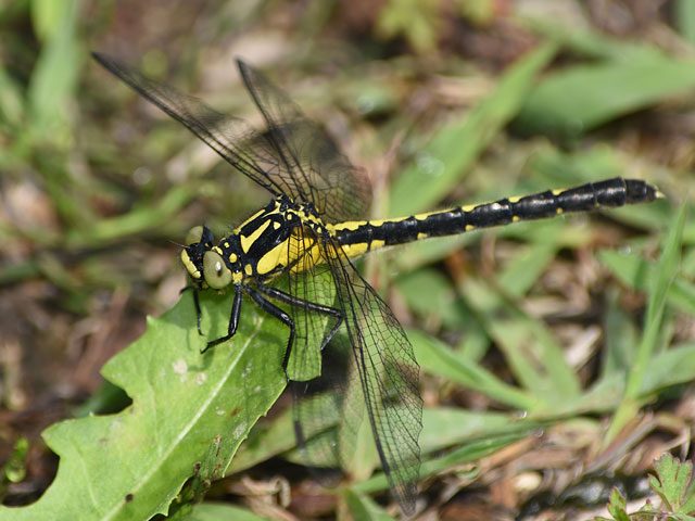 まずは第一地点.ここは例年たくさんのコサナエ属が見られるのですが今年は本当に姿がありません.遅いのか,羽化数が少なかったのか.多分後者です.池で羽化殻を見ることがほとんどありませんでした.ここには,まだ未熟なタベサナエがいました.