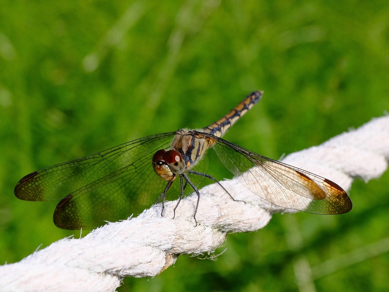 ギンヤンマのペアは延々と飛び廻って、あちこちに産卵しています。2時間程見ていましたが2組のペアは離れずに飛んでいました。ギンヤンマは♀単体でも産卵できるはずですが、後釜を狙うあぶれ♂が同じく飛び廻っているのでペアの♂は離せないのでしょう。それにしてもこのスタミナはスゴイ!!そして♀の卵は何個ほど体内に蓄えられているのか? |